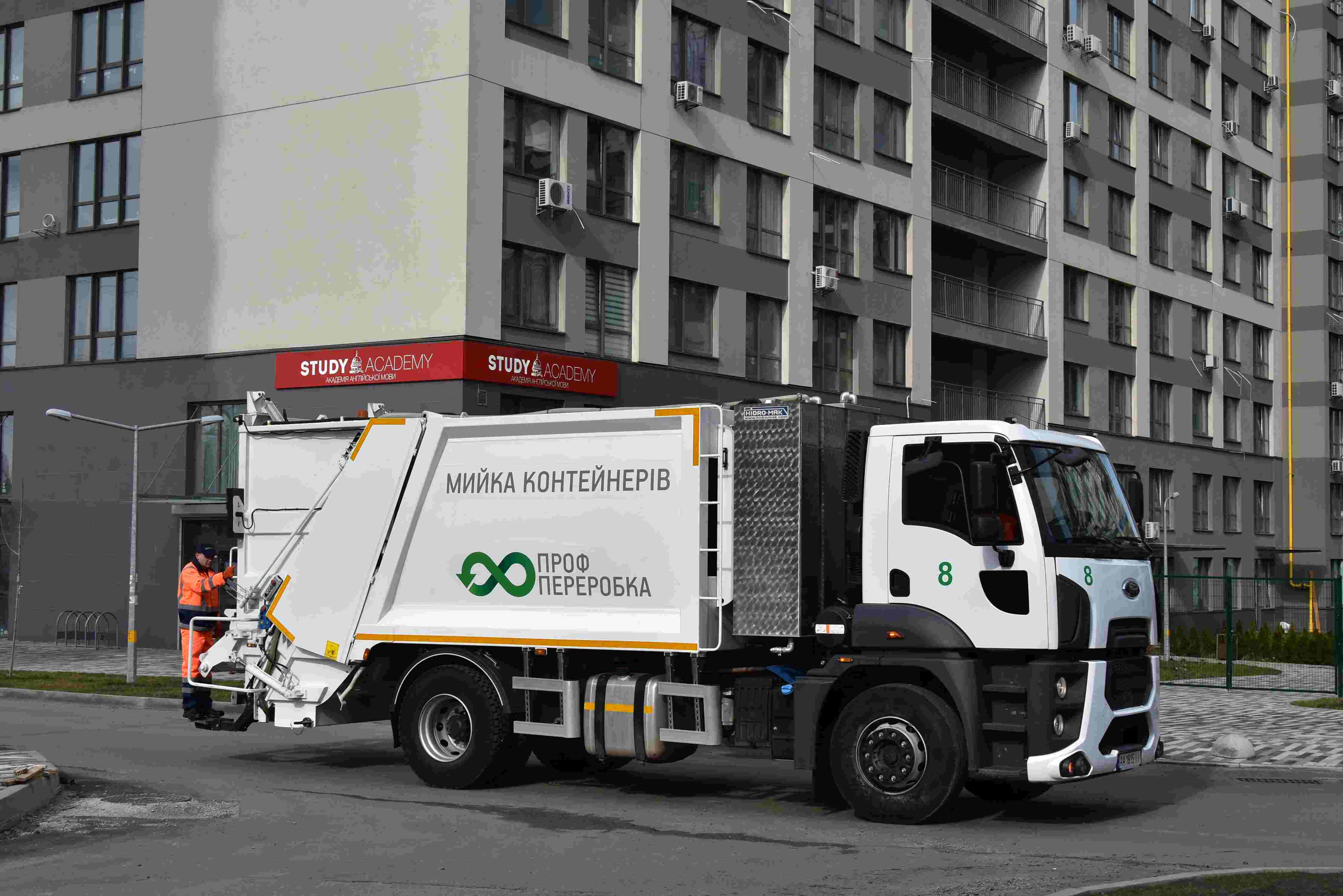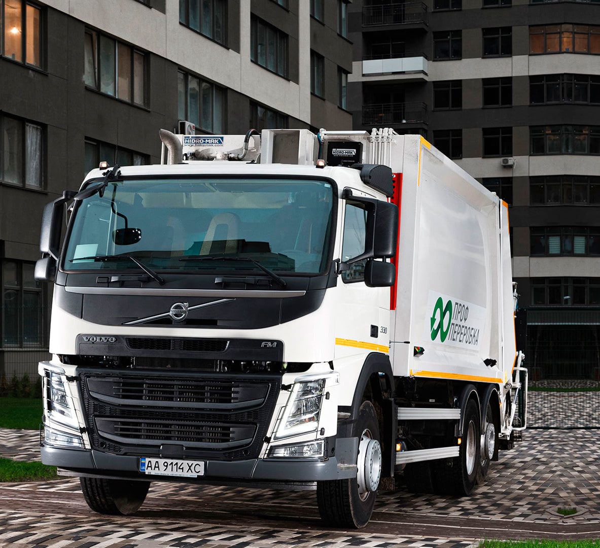 Автопарк компанії нараховує 30+ нових i сучасних сміттєвозів Volvo та Ford стандарту Євро-5 та Євро-6 (мінімальний % викидів) з комплексною системою GPS.